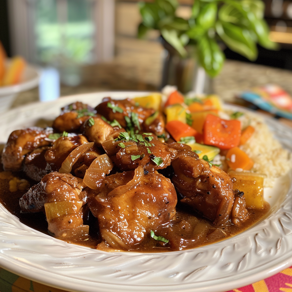 The aroma of Brown Stew Chicken wafts through the air, enveloping you in a warm, comforting hug. This dish, with