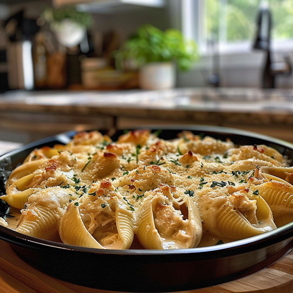 Garlic butter chicken alfredo stuffed shells are like a warm hug after a long day. Imagine sinking your fork into
