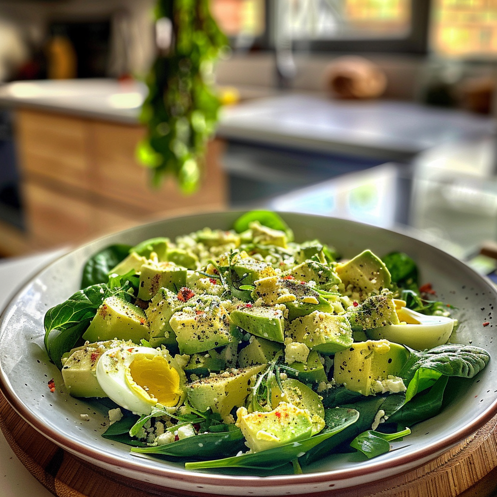 Avocado and Spinach Egg Salad is a delightful dish that brings together the creamy richness of avocado with the fresh,